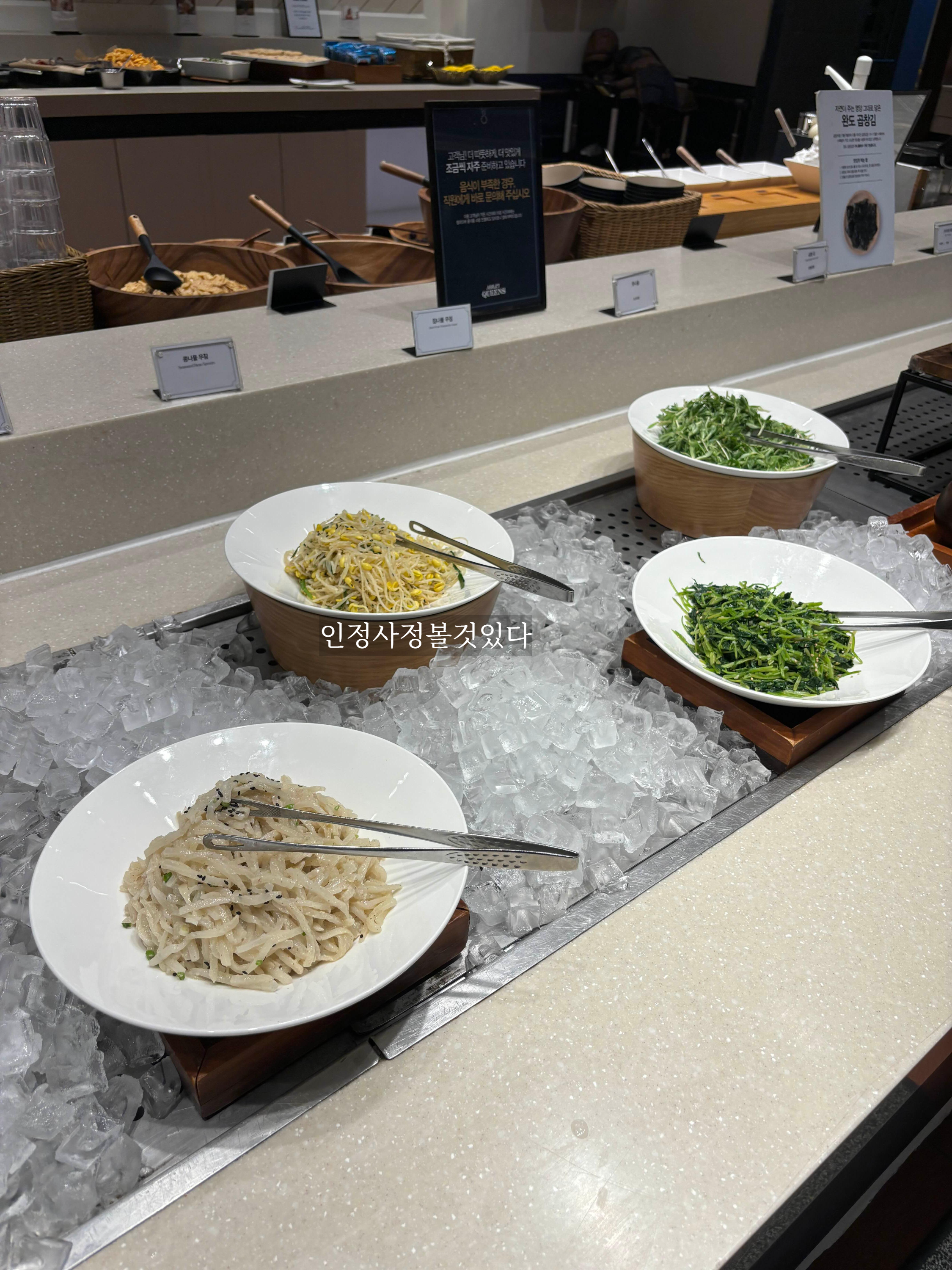 속초 켄싱턴리조트 모닝뷔페 후기로 다음 코너는 각종 반찬들과 요거트 이다. 아침이라 그런지 거한 메뉴는 없지만 불고기 잡채 계란 요리 등등 없을 거 빼고 있는 건 다 있는 그래도 알찬 구성에 조식 메뉴들이었다 생각했다.